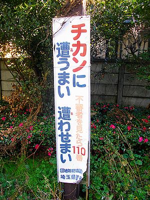 | 今日は、西新井で取材。マップでは取材後に歩いたように見えるかもしれないが、実は取材前に歩いている。夕方からの取材だったので。道中で未食駅そばを3軒も食べ潰したので、取材中に食べた1杯が結構きつかった。というか、旅先以外で未食駅そばを1日で3軒潰すなんて、たぶん10年ぶりくらいだ。しかも、うち1軒はセットメニュー。もう、腹パン。20代の若者じゃあるまいし、無茶は控えないと。 写真を1枚。どうにも違和感が拭えない標語(草加市旭町2丁目)。まるで「チカンを避けて歩け」と言っているように受け取れてしまうのは、私だけだろうか? |