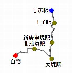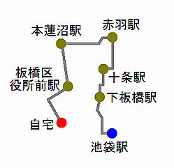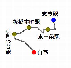 | Bとの兼ね合いで、今日は13300歩を超えておきたい。まっすぐ歩いたのでは届かないので、終盤に遠回りをして微調整。本来なら、こんな小細工を弄さずに、未踏の道を含んで全体的に遠回りになるようなルートを組みたいところ。しかし、今日は板橋区役所前駅近くの豚丼店で一杯食べたかったのだ。コロナの影響で、飲食店は20時までしかやっていない。20時までに、板橋区役所前に着きたかった。 ところが、いざ行ってみると、19時過ぎの時点ですでに閉まってるし! 完全にランチタイムのみの営業になっているのかも。まったく、なにかと不自由なご時世だ。調子狂うなぁ。 |