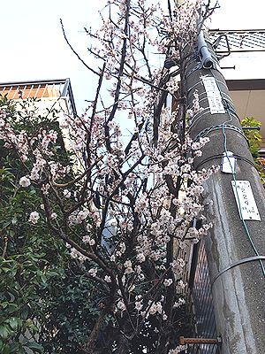 | 今日は、夕方から雨予報。税務署へ行かなければならなかったので、珍しく早朝に歩くことにした。朝6時に出発して、ぐるっと歩いて帰りがけに税務署に寄れば9時を過ぎる。税務署の窓口には、早くも確定申告の相談に訪れる人々が行列を作っていた。「何をそんなに相談することがあるんだろう?」と思わないでもない。不動産関係とか、株関係とかかな。そんな人々を尻目に、私の用事は3分で終わった。 写真を1枚。おや? 桜が咲いている(北区滝野川1丁目)。早咲きの品種だろうか。ここのところ暖かい日が続いているから、狂い咲きかと思った。 |