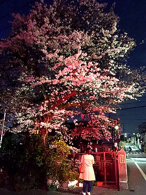 | なんか、いきなり夏になった。ついこの間まで寒さに震えていたのに、今日はリュックが密着する背中にべっとりと汗をかいた。そんな中、桜も必死に咲いていた。夕方からの歩き出しで、見物したのはもっぱら夜桜。コロナの影響で宴席は自粛ムードだが、武蔵関公園では結構レジャーシートを敷いているグループも目立っていた。 桜の写真を3枚。その1:東伏見稲荷の鳥居が絵になる(東伏見駅付近)。その2:武蔵関公園の桜は、池に張り出した枝振りが見事。その3:都会らしく、飲食店のネオン色に染まる桜(武蔵関駅付近)。 |