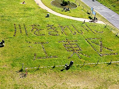 | 新型コロナウイルスをめぐる緊急事態宣言が全国に広がってから、初の週末。首都圏脱出を図る人が減り、しかも昨日が大荒れの天気だったこともあるのか、今日は都内の人出が多かった。葛西、西葛西、豊洲あたりは、普段よりも人が多いのではないかと思うほど。まるで何事もなかったかのような賑わいだ。う~ん、私も人のことを言えた義理ではないけれど、これだとコロナ感染は止まらないかな……。 今日の写真。清砂大橋上から、河川敷を眺める。よく生垣でこういうのがあるけど、ここでは花壇で文字を象っていた。花壇だと色が統一されにくいから、文字が浮きにくい。 |