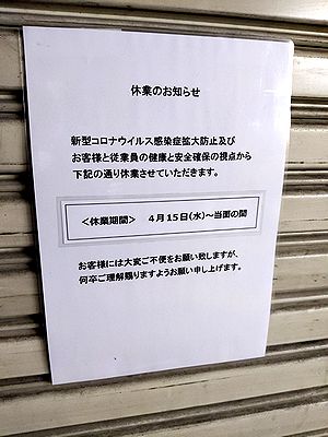 | 今週は、志茂ウィーク。ちょっと複雑な事情があって、志茂へ行ったり行かなかったりのライフスタイルになっている。これも、大きく捉えれば新型コロナのせい。そもそもコロナがなかったら、志茂ライフは4月頭で終わっていたはず。まったく、コロナには予定を狂わされっぱなしだ。 予定が狂うといえば、これもそう(王子駅「生そば処」)。休業する飲食店が多く、他の飲食店やコンビニ・スーパーに“密”ができる形が続いている。「開けていても客が入らず、赤字になるから休む」ならしょうがないと思うけれど、自粛気取りで休業するのだけは絶対にやめてほしい。 |