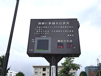 | 正直、今日は漫歩したことを後悔。自宅を出る時点では晴れ間が覗いていたから歩くことにしたのだけれど、途中から雨が降ったりやんだり。風も結構強くて、傘が意味をなさない状態。こんな中を歩いても、まぁロクなことがない。ちょっと欲張りすぎたかな。断念する勇気も、必要か。 写真を1枚。暗渠化された田柄川の上に、緑道(遊歩道)がある。そのすぐそばに、田柄川の水位を示す電光掲示があった。確かに、暗渠だと水位が見えないから、大雨が降っても氾濫しそうなのかどうかが分からない。このように表示するのは、結構重要なことかもしれない。 |