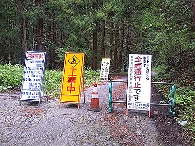 | 佐羽根と一の渡は、三陸鉄道の中で屈指の秘境駅。どちらも、駅周辺に民家は数えるほどしかない、深い山の中。駅周辺には、熊も出るらしい(写真は佐羽根駅)。こんなところに駅を設置して、いったい誰が利用するのか……と思っていたら、一の渡駅には中学生と思しき学ラン姿の男の子が。ひとりでも利用するのなら、やっぱり廃止にはできないよねぇ。 佐羽根・一の渡間は、山道を大きく迂回しないと行けない。途中にこんなところもあったが、ここが通れないとなるとほぼ往来不能になるので、構わずに進んだ。一応舗装道路だけど、ほぼハイキングのような状態だった。 |