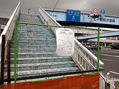 | 今日で、8回連続池袋駅スタートの帰宅漫歩ということになった。なんというワンパターン! こんなの、幡ヶ谷時代以来ではないだろうか。もうちょっと目新しさのある街を歩きたいところではあるのだが、今は時間的な余裕が全然ない。とりあえず7月7日までの辛抱なので、もうちょっとだ。 今日の写真。王子駅前の歩道橋が、通行止め。これをやられると、明治通りを渡れる箇所がほとんどなくなるので、超困る。止めるのは、代替手段を確保してからにしてくれないと。渋谷とか汐留とか、渋滞回避のために歩行者をじゃんじゃん歩道橋に逃がしている街は、これが怖いね。 |