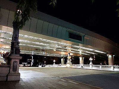 | 八丁堀でヤボ用があり、そのついでに歩いた。自宅まで歩き通す選択肢もあったけれど、用事を終えて八丁堀を出た時点ですでに21時を回っていたので、とりあえず10000歩を超えておくにとどめた。翌日も朝から出かけなければならないことだし。緊急事態宣言下ということで街は静かだったけれど、駅前にはちゃんとキャバクラの客引きがいるし、公園にはしっかりと酔いつぶれた人もいる。若い女性のひとり歩きが目立つのが、ちょっと意外と言えば意外だった。 写真を1枚。先日復旧したと紹介したばかりの、常盤橋。今日は、夜の姿を。 |