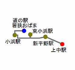 | 昨日に続いて、福井県内の漫歩になった。道の駅発の早朝漫歩も、もうだいぶ恒例になってきた。車中泊で旅をしているときは、これがもっとも合理的な方法なものでね。特に夏場は、4時くらいにはもう明るいので、早朝だけでも結構歩けるものなのだ。本当は道の駅に車を放置するのはあまりよくないんだけど、まぁ営業開始前には戻っているので、どうかお目こぼしをお願い。 今日の写真は、難読地名シリーズ。東小浜駅付近を流れる、遠敷川。さて、これは何と読むでしょうか? 正解は、こちら。知らないと、ちょっと読めないよねぇ。 |