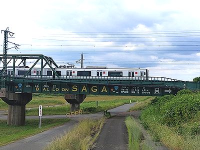 | JR長崎本線の鍋島駅と久保田駅の間に、バルーンさがという年に5日間しか列車が停車しない駅がある。駅の出口が直接河川敷に通じており、この河川敷で佐賀バルーンフェスタが開催されるときだけ営業する臨時駅だ。わざわざ営業していない期間中に訪れる酔狂な人間は私くらいのものだろう……と思っていたのだが、私の他にも見物に訪れている人がいて、ビックリ。鉄道マニアの懐は、想像以上に深い。 残念ながら、出入口が施錠されていてホームまでは行けず。2020年はコロナの影響でバルーンフェスタが開催されなかったこともあり、雑草が伸び放題になっていた。 |