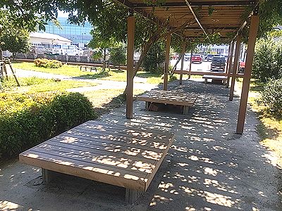 | 西鉄久留米駅の未食駅そばを食べ潰したくて、このエリアを歩くことに。久留米駅はJRと西鉄でだいぶ離れているので、青春18きっぷで移動する際に西鉄久留米に寄ろうとすると、どうしても一定の徒歩移動が求められる。西鉄で行けば簡単なのだけれど、18きっぷ期間中はたいてい18きっぷ利用になるので、この辺りで漫歩する機会が増える。 真夏の九州は、とにかく暑い。ただ、東京と違うのは、日陰に入ればそれなりに涼しいということ。東京は、日陰も暑いのでね。久留米駅前の京隈公園に藤棚のベンチがあって、助かったよ。30分ほど横になって、体力回復! |