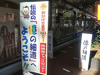 | こりゃ、重症だな。今日こそ銀行回りをと思って、通帳をまとめて持って出るのは意識していたのに、預け入れるべき現金を持って出るのを忘れた。やるべきことが10あるとしたら、3か4くらいしかできていない。なんて非効率な日々なんだろうか。単行本制作に思考回路の大部分をとられてしまっているからなんだろうけど、日々の生活もちゃんとこなさないと。 今日の写真。高額当選が多く出ることで有名な、西銀座チャンスセンター。その窓口へ続く通路は、「億の細道」と呼ばれている。でもね、当選が多く出るのは、多く売れているから。奥の細道は、きっと険しい山道だろう。 |