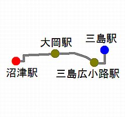 | JR東海道線の三島・沼津駅間は、ずいぶん長い。営業キロで、5.5kmもある。これは、山手線の池袋・代々木間に相当する。5駅ぶんだ。しかも、間に峠や大きな川などがあるわけではなく、市街地がずっと続いている。間にもうひと駅設置してもいいのではないかと、ずっと思っていた。 こういう疑問が、間を歩くことで解決する場合もある。東海道線は三島・沼津間に駅がないが、この間を東海道線とほぼ並行して走る御殿場線に大岡駅があったのだ。なるほどねぇ。ただ、御殿場線は沼津に通じているけれど、三島には通じていない。やっぱり、ちょっと不便そうだなぁ。 |