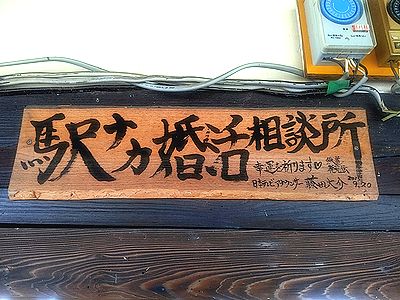 | 健康保険絡みのヤボ用で、板橋区役所へ。午後から雨の予報だったのでさっさと済ませたかったのだが、タイミングが悪かったようで、2時間待ち。他の窓口はガラガラに空いているのに、健保の窓口だけ長蛇の列。人員配置を工夫するとかで、なんとかならんもんかね。ならないんだろうな。来庁者が使用した椅子が微妙にずれたのを直すだけのスタッフとかもいるくらいだから。縦割りの極致だ。 今日の写真。店主の眉毛がつながっていたら、面白い(板橋本町駅付近)。ガムテープの上貼りが気になる。何が隠れているのだろう? まさか、派出所? |