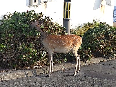 | 最北の駅から、ノシャップ岬まで。もっと北に宗谷岬があるけれど、鉄道駅発の漫歩としてはこれが最北になりそう。稚内とはいえ、夏はそれなりに暑かった。朝5時半発の早朝漫歩だというのに、岬の突端に着く頃には結構汗だく。ただね、風はやっぱり冷たいので、ベンチに腰を下ろして休んでいると肌寒さを覚える。やっぱりここは、北の果てなんだな。 おまけ写真。ノシャップ岬灯台付近で、野生のエゾシカが朝食タイム。深夜・早朝は、道内の各地でこんな光景が眺められる。それなりに警戒心が強いので、驚かさないようにゆっくり近づくのが撮影のポイントだ。 |