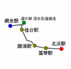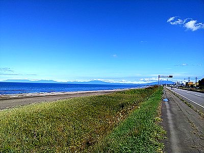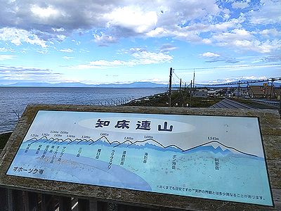 | 網走駅での公式取材を終え、釧網線の時刻表を見ると、次の便は約4時間後。ダメだこりゃ。こうなると、もう歩くしかない。どうせなら別の仕事で役に立つ可能性のある道の駅を見に行こうということで、網走市内の「流氷街道網走」を経由して、釧網線に沿って北浜まで。 鱒浦・北浜間では、オホーツク海岸から知床岬までが見渡せる。こうして見ると、この辺りのオホーツク海岸は結構深くえぐれていて湾状になっているのが分かる。知床連山が結構高いから、遠近感が狂ってそう見えるのかもしれないが。北浜駅の展望台からは、知床連山がよりくっきり望めた。 |