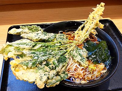 | 2日続けて傘をさしての漫歩になった。今日はこれといってマストな用事はなかったのだけれど、北海道から帰ってきてからまだ駅そばを1杯しか食べておらず、しかも明日からまた取材旅行なので、その前に東京でもう1杯くらい食べておきたいなと。あとは、「雨ニモ負ケズ」の心境かな。 結果、目当ての店はコロナ時短で食べられなかったが、上野の「富士そば」で思いがけず印象的な一杯に出合えた。伊豆大島産の明日葉を姿揚げにしてトッピングした、明日葉天そば。威風堂々たるルックスに、太陽を目いっぱい浴びた葉の青々とした香り。これが490円とは、信じがたい。 |