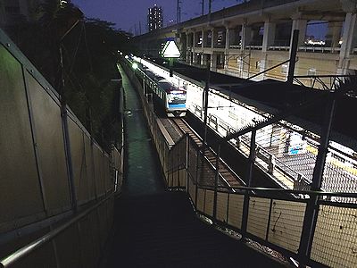 | 神戸市内での取材を終え、宿代わりに乗る高松行き夜行フェリーを待つ間に、歩く。時間はたっぷりあるので、終盤に温泉に入って汗を流せるようなルートを組んだ。石屋川駅近くの「六甲おとめ塚温泉」がお気に入りなもので。 途中、JR六甲道駅と灘駅の間にできた新駅・摩耶駅を訪ねてみる。外観は東十条みたいな感じだけれど、街の雰囲気は全然違う。東十条は平民の街、摩耶はセレブな街だ。絵に描いたような高級住宅地だった。 写真を1枚。夜間にこういうところを通るのは、ちょっとだけ怖い(摩耶・六甲道駅間)。 |