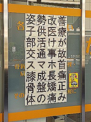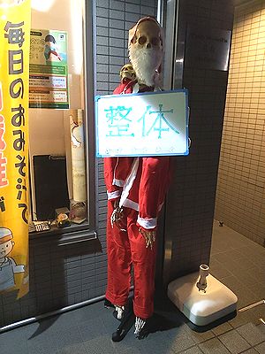 | 長いこと、20000歩から遠ざかってしまっている。足首の負傷のため、というのが建て前なのだが、実は足首よりももっとセンシティブな部位にも傷ができていて、そちらの影響の方が強い。これを治してしまわないことには、第12弾単行本の取材活動を始められないから、早く治してしまいたいのだが。とりあえず今は病院に行っている余裕がないので、セルフケア。もう1週間くらいたっても症状が改善されないようなら、病院、行かないといけないかなぁ。 写真を1枚。この整体は怖すぎる。サンタコスプレがなおのこと怖い。去年の? と思ってしまう(豊島区高田1丁目)。 |