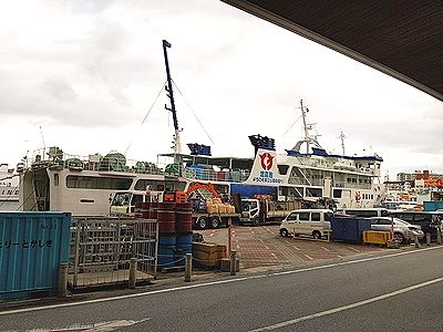 | 帰りのフライトまでの間に、なんとか10000歩をクリアする。それだけを考えて、朝7時に宿をチェックアウトして歩いた。ネットカフェ利用時はともかくとして、宿に入ったときには9時くらいまでゴロゴロしていることが多い私にとっては、異例のこと。今回は沖縄滞在時間が25時間しかなったので、かなり忙しかった。もうちょっと、ゆっくりしたかったなぁ。 写真を。宿のすぐ近くに、大東や久米島、慶良間などへのフェリーが発着する「とまりん」があったので、寄ってみた。写真は、渡嘉敷行きのフェリー。船旅、いいなぁ。乗りたいなぁ。何も考えずに、デッキでボーっとしてみたい。 |