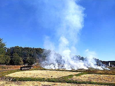| 恒例の、道の駅発の早朝漫歩。なんとなく駅伝いに歩いただけなのだが、小諸駅前は懐古園にちなんでいるのであろう庭園風になっていて、乙女駅近くには噴水と紅葉が織りなす風景が絵になる乙女湖公園もあった。小諸市に対しては、個人的には”そばの街”というイメージが強かったのだけれど、実際に歩いてみると“庭園の街”だった。 おまけ写真。稲刈りを終えた田んぼでは、藁焼きが行われていた。これもなかなか絵になる風景なのだが、私が目指す平原駅はこの煙の向こうにある。というか、この藁焼きは平原駅をいぶすような形になっているよ。 |