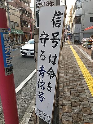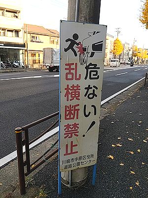 | よきかな、よきかな。時間がたっぷりあって、お尻の状態も安定している。安心して、20000歩歩ける。木や石の固いベンチに座れるということが、こんなにもありがたいことだとは。当たり前のことを当たり前にできるってことが、なによりの幸せなんだなぁ。 平間から鹿島田にかけてのエリアで、気になる標語というか立て看板を続けて見かけた。その1:乱横断って、あまり聞かない。ナナメ横断の方が分かりやすいんじゃないかな。その2:略すと「信号は信号」になるわけで、しっかり読まないと意味が理解できない。 |
