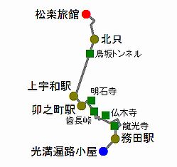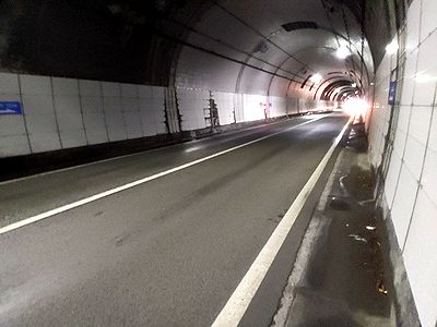 | 昨日は札所なしだったが、今日は3つ。どうも極端だね。3か所お参りして、峠を2つ越える。しかも、午後からしとしとと雨まで降り始めた。のんびりムードの昨日と打って変わって、忙しい一日だった。 歯長峠は山道で越えたが、その後雨が降り始めたこともあり、鳥坂峠は国道のトンネルでショートカット。このトンネルには歩道がなく、しばしば「遍路道で最も危険なトンネル」と言われる。実際に歩いてみると、路側帯はそこそこ広いし、トンネルの前後に歩行者用の反射タスキが用意されているので、命の危険を感じるようなムードではなかった。 |