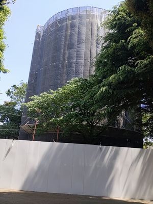 | う~ん、全然歩けない。昨日は21時半蔵門発で歩くチャンスだったのだが、こういう日に限って雨に阻まれてしまう。手のひらを返すような発言になってしまうが、半蔵門発着の漫歩はそう多くならないかもしれないな。せいぜい、あと1回か2回くらいで終わりそうだ。 今日の写真。だいぶ前に紹介した野方配水塔が、仮囲いされて足場に覆われていた。ほぼトマソン化しているのではないかと思われるので、もしかして解体されてしまうのかなと思ったのだが、修復工事らしい。どうか、妙なペイントとかしないで、元の姿のままでいてほしい。 |